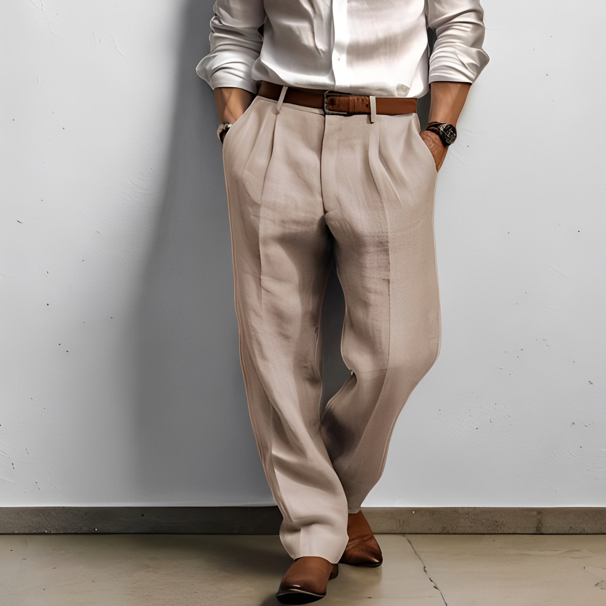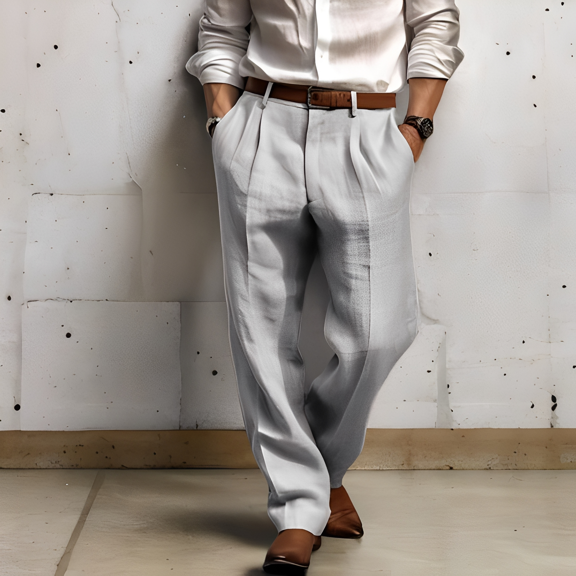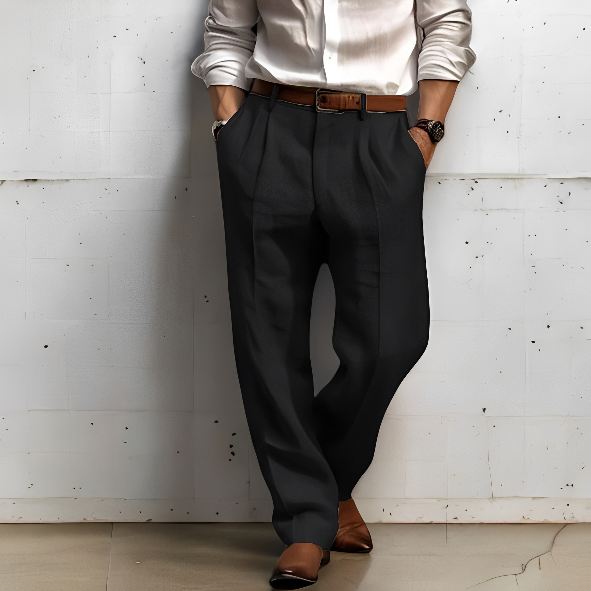 Oživte svůj šatník s těmito prodyšnými širokými pánskými kalhotami, které vám zaručí pohodlí a styl po celý den. Tyto kalhoty mají volnou a plynoucí siluetu, která se pohybuje s vámi, ideální pro neformální výlety, procházky po městě nebo relaxační víkendy. Díky volnému střihu a čistým liniím spojují klasické pohodlí s moderním vzhledem pro jakoukoli příležitost. Jejich uvolněný střih a jemný dotek je dělají perfektními pro každodenní nošení, ať už jdete pro ranní kávu nebo na večerní zábavu. Jsou lehké a snadno se kombinují, což z nich dělá všestranný základ pro moderní neformální šatník.