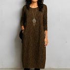 Udržte se v teple a buďte elegantní tuto sezónu s těmito dámskými midi šaty Abdelaine s dlouhými rukávy, které kombinují pohodlí se stylem. Díky lichotivé midi délce a měkké, teplé látce jsou ideální pro běžné nošení, do práce nebo na oslavy. Praktické boční kapsy přidávají funkčnost bez narušení elegance. Jejich univerzální design lze snadno sladit s botami, balerínami nebo podpatky pro dokonalý zimní vzhled. Pohodlné, stylové a praktické, tyto šaty jsou nutností ve vašem zimním šatníku.