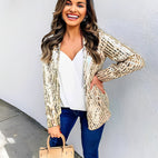 Objevte flitrové sako Abigaëlle, oslnivý kousek vytvořený k tomu, aby přidal jemný, ale výrazný prvek k vašemu oblečení. S jeho přiléhavým střihem, klopovým límcem a dlouhými rukávy je toto sako jak elegantní, tak zábavné. Třpytivé flitry pokrývají přední části, což ho činí ideálním pro večírky, oslavy nebo elegantní akce. Navzdory svému okouzlujícímu třpytu si udržuje strukturovaný vzhled, který snadno sladíte s kalhotami nebo šaty. Ať už se oblékáte do elegance nebo přidáváte šarm do svého šatníku, sako Abigaëlle vynikne, aniž by bylo příliš okázalé.