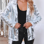 - Lesk a elegance: kompletně zdobené flitry na klopách a přední části vám dodají zářivý vzhled, připravený na oslavy.