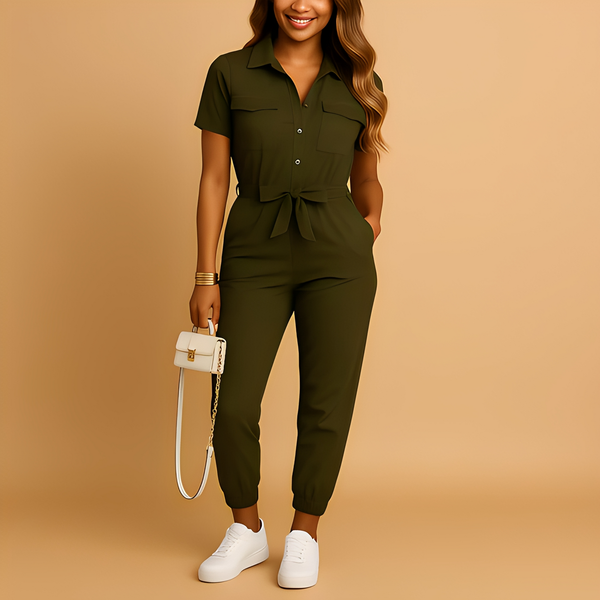 Dámská přiléhavá kombinéza Agathel s páskem je vytvořena, aby zdůraznila vaši figuru, přitom poskytla styl i pohodlí. Střih, který obepíná pas, dodává lichotivý a elegantní vzhled, vhodný pro všechny postavy. Vyrobena z měkkého a kvalitního materiálu, zajišťuje celodenní komfort. Perfektní volba pro práci, večírky či speciální akce, snadno kombinovatelná s podpatky či doplňky. Obohatí váš šatník svým všestranným a elegantním stylem.