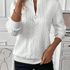 Alessia sweatshirt s zipem spojuje ležérní komfort s moderním, stylovým vzhledem. Jeho měkký materiál zajišťuje příjemný pocit při nošení, zatímco zip poskytuje užitečnou flexibilitu a ventilaci. Snadno se kombinuje s různými outfity – ať už pro volný čas, kancelář nebo relaxační víkendy. Díky promyšlenému designu je Alessia sweatshirt nezbytným kouskem pro přechodové období a dále.