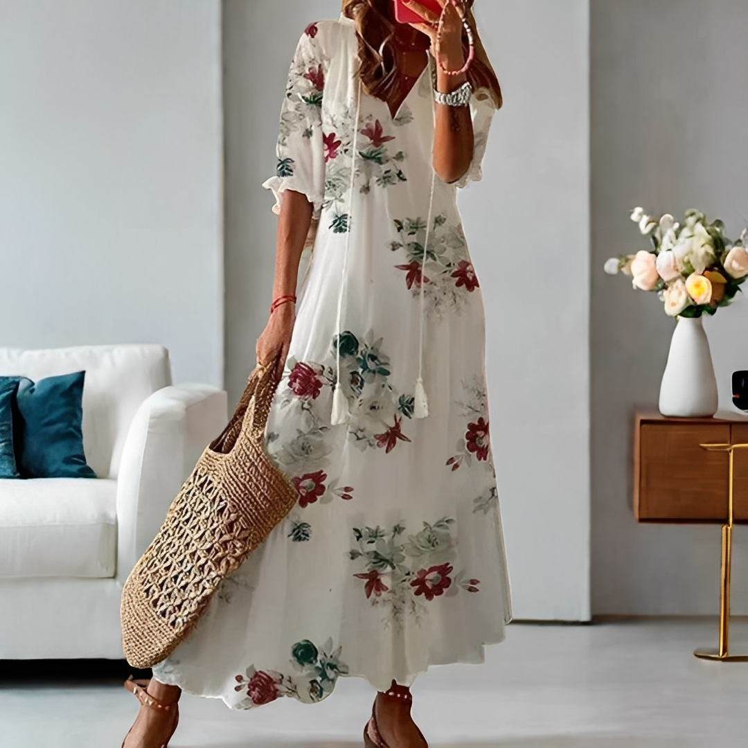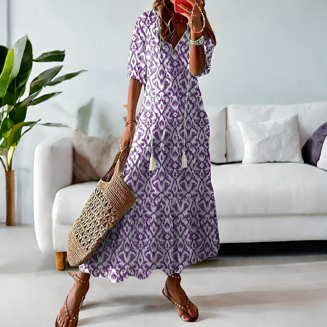 Nenucená elegance pro každý den: šaty Alica jsou navrženy tak, aby měly volný a lichotivý střih, který jemně skrývá bříško a zároveň zdůrazňuje vaši přirozenou postavu. S elegantním V výstřihem a plynulou linií nabízejí nenucený šarm a pohodlí. Díky lehké a prodyšné látce zůstáváte celý den svěží a uvolněná. Ideální pro nenucené procházky, dovolenou nebo každodenní nošení, tyto šaty ladně sledují vaše pohyby. S Alicou se pohodlí a ženský styl skvěle doplňují.