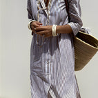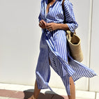 Vyzkoušejte Amélie - klasické pruhované šaty, navržené pro snadné spojení elegance a pohodlí. Šaty mají volný střih a klasické detaily, které dodávají lichotivou siluetu a umožňují volný pohyb. Ideální pro práci, brunch nebo volný čas, tyto šaty každý den spojují styl s pohodlím. Vyrobené z kvalitní prodyšné tkaniny, jsou příjemné na dotek a snadno udržovatelné. S klasickým límcem a univerzálním asymetrickým lemem se hodí na jakoukoli příležitost od rána do večera.