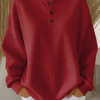 ‚Anabella – Volná vaflová mikina s knoflíkovou légou pro ženy‘ by neměla chybět ve vašem šatníku: