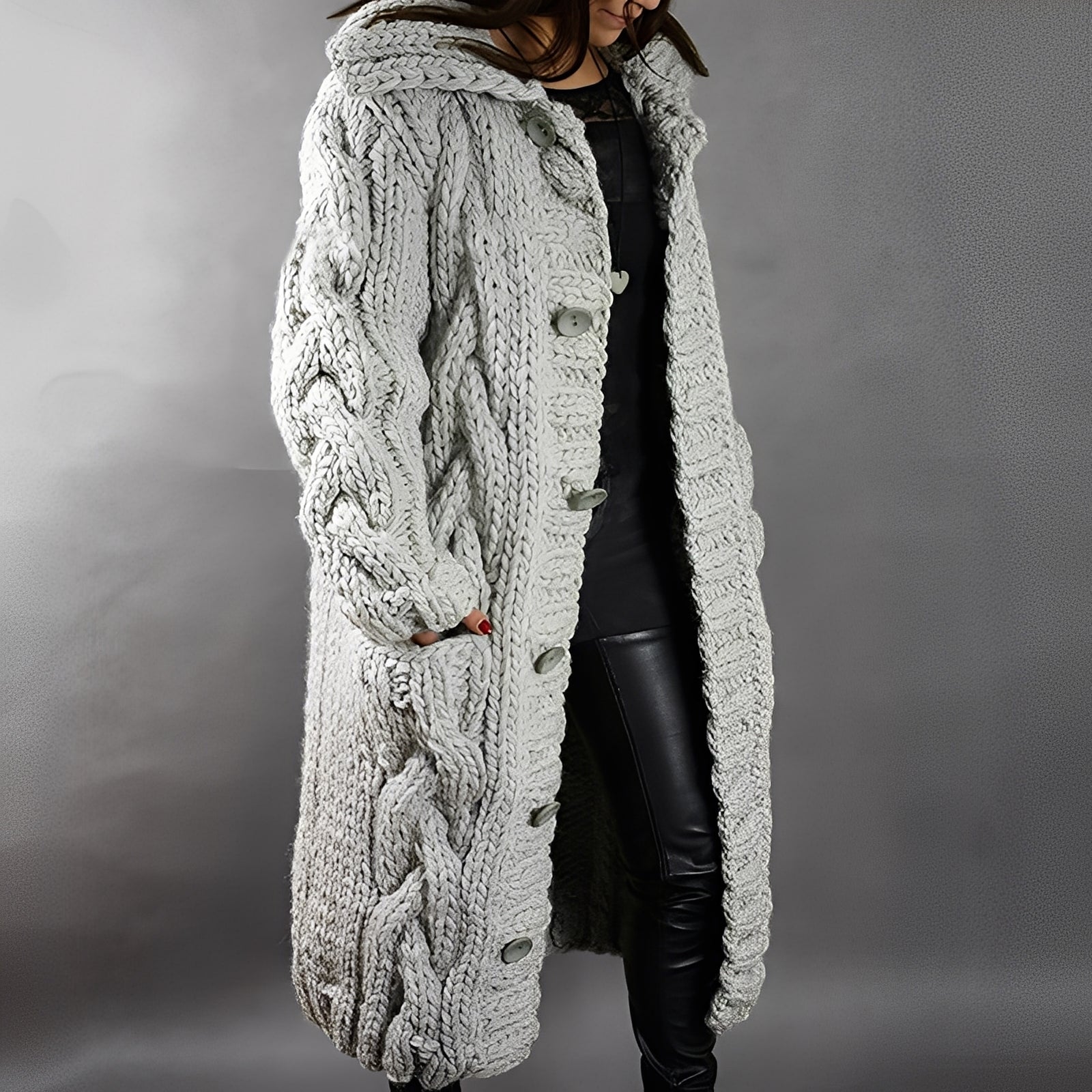Arielle - Stylový, volně střižený dlouhý vlněný cardigan pro ženy