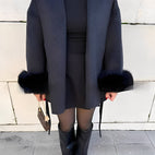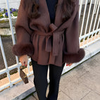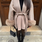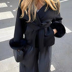 Armani - Elegantní, stylový dámský kabát s kožešinou, dlouhý