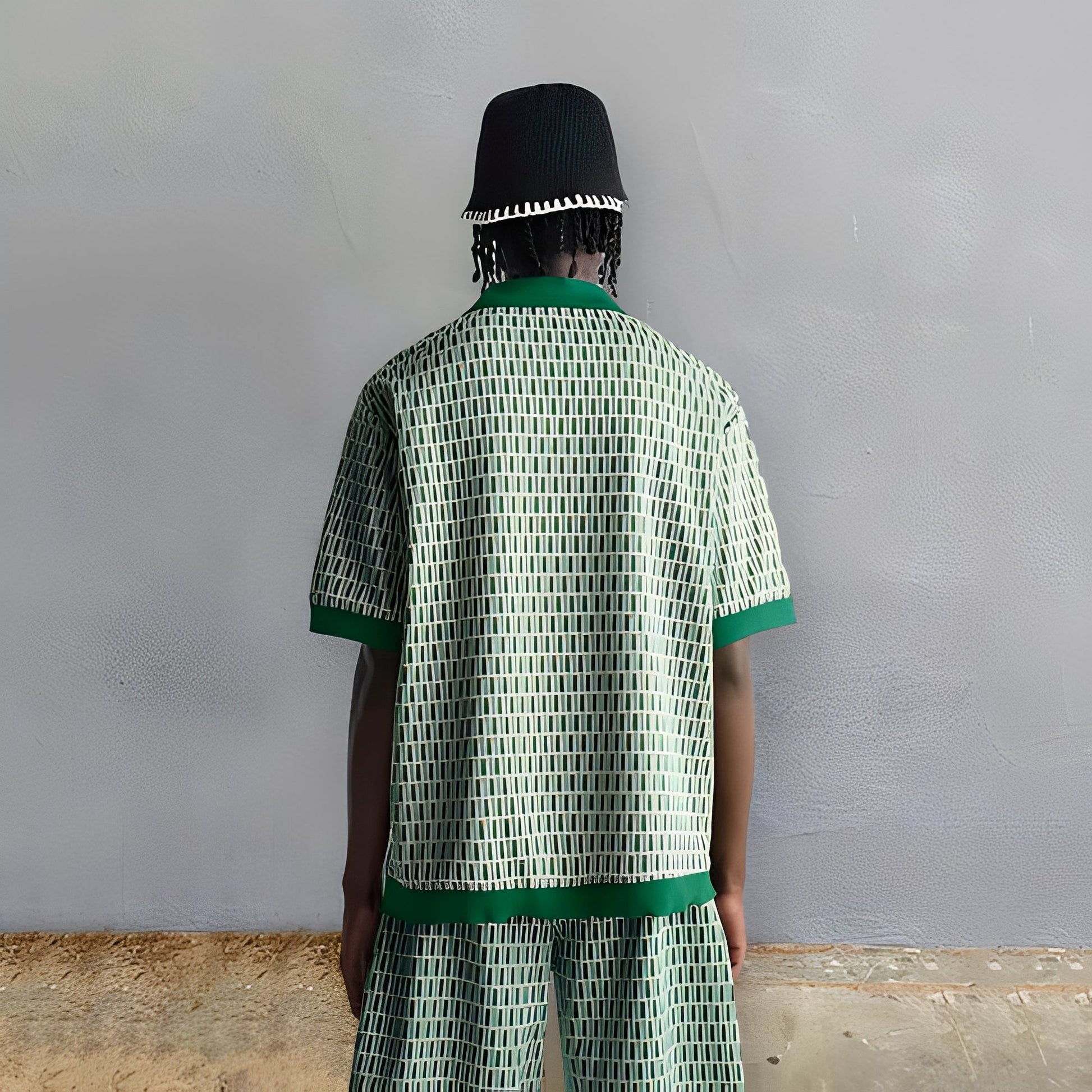 Tato set košile a šortek s geometrickým designem pro muže Atem je koncipována pro jednoduchý a elegantní vzhled. Obsahuje košili na knoflíky a odpovídající šortky, nabízí stylový vzhled vhodný pro horké dny. Lehký a prodyšný materiál zajišťuje celodenní komfort, ať už jste na dovolené, s přáteli nebo odpočíváte. Výrazný geometrický vzor přidává moderní prvek a snadno se ladí. Nezbytný dvoudílný komplet pro muže, kteří si cení pohodlí a stylu.