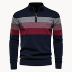 Svetr se čtvrtinovým zipem Aurullo je navržen s elegantním pruhovaným vzorem a vyroben z luxusní bavlněné směsi. Tento ultra-měkký svetr jemně přiléhá k pokožce a poskytuje nepřekonatelné teplo. Sofistikovaný zip a přiléhavý střih dělají z tohoto svetru všestranný kousek, ideální pro každou příležitost.
