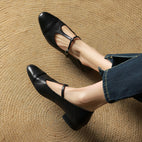 Bella - Pohodlné kožené baleríny s T-kovovou sponou pro ženy