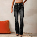 Tyto džíny spojují vysoký pas s moderně rozšířenými nohavicemi. Pevný materiál poskytuje jak pohodlí, tak dlouhodobou výdrž, zatímco střih vizuálně prodlužuje nohy a zdůrazňuje pas. Snadno se ladí s ležérními tričky nebo elegantními topy. Nezbytné pro módní ženy, které chtějí komfort.