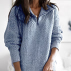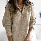Carly - Dámský volný svetr s polovičním zipem
