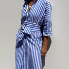 Christel - Dámské dlouhé polo šaty s pruhy