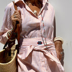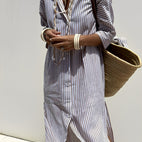 Oživte svůj každodenní styl s našimi dámskými dlouhými polo šaty Christel s tradičními pruhy. Šaty mají elegantní polo límeček a jsou vyrobeny z měkké, prodyšné látky, která spojuje styl a pohodlí pro celodenní nošení. Jejich dlouhá silueta poskytuje upravený a elegantní vzhled, ideální pro neformální události, pracovní dny nebo víkendová setkání s přáteli. Nadčasový pruhovaný vzor přidává sofistikovanost a zároveň zachovává přirozenou eleganci vašeho outfitu. Tento všestranný kousek ve vašem šatníku kombinuje moderní styl s pohodlím pro ženy, které chtějí vypadat stylově a cítit se pohodlně.