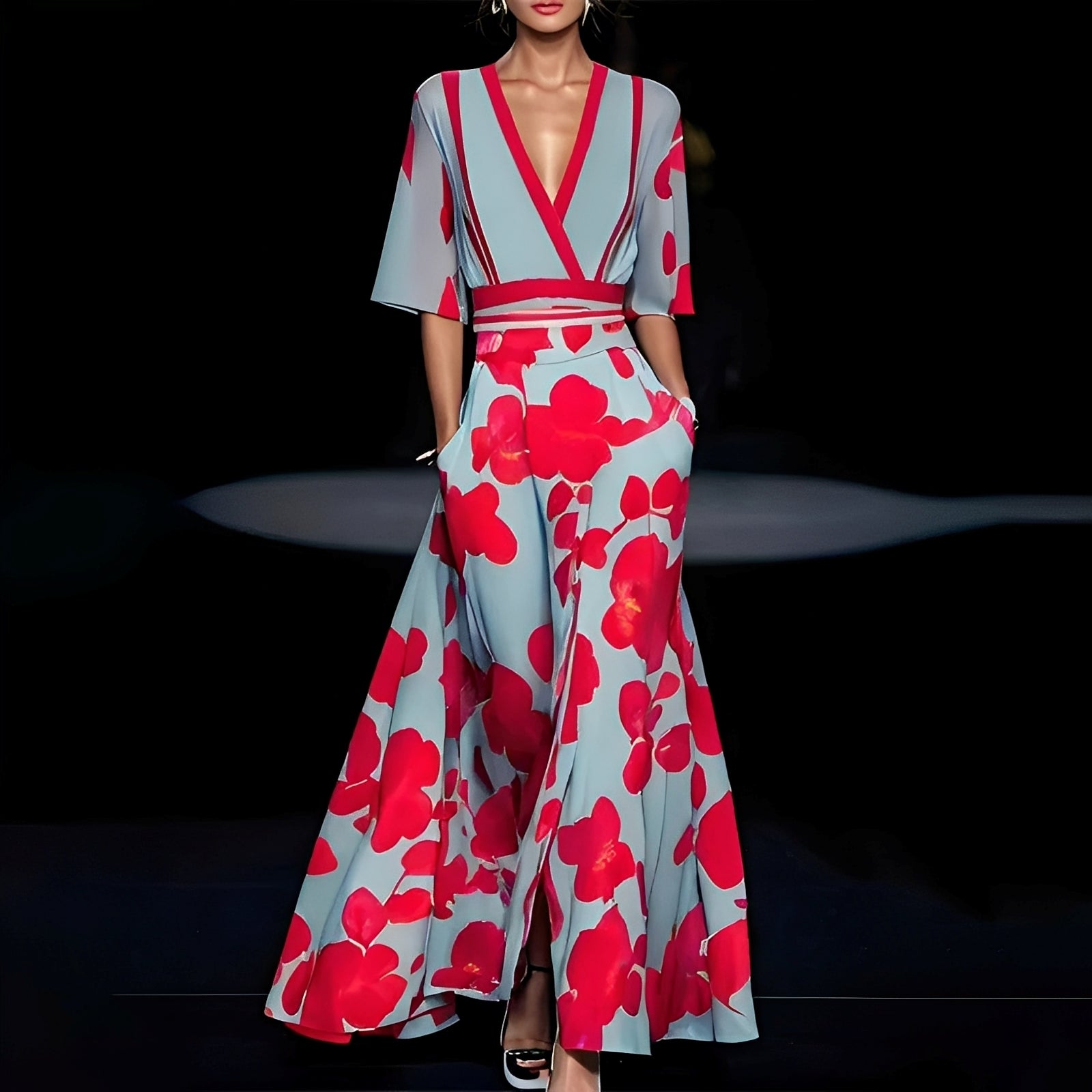 Débora - Ženské dlouhé šaty s květinovým vzorem