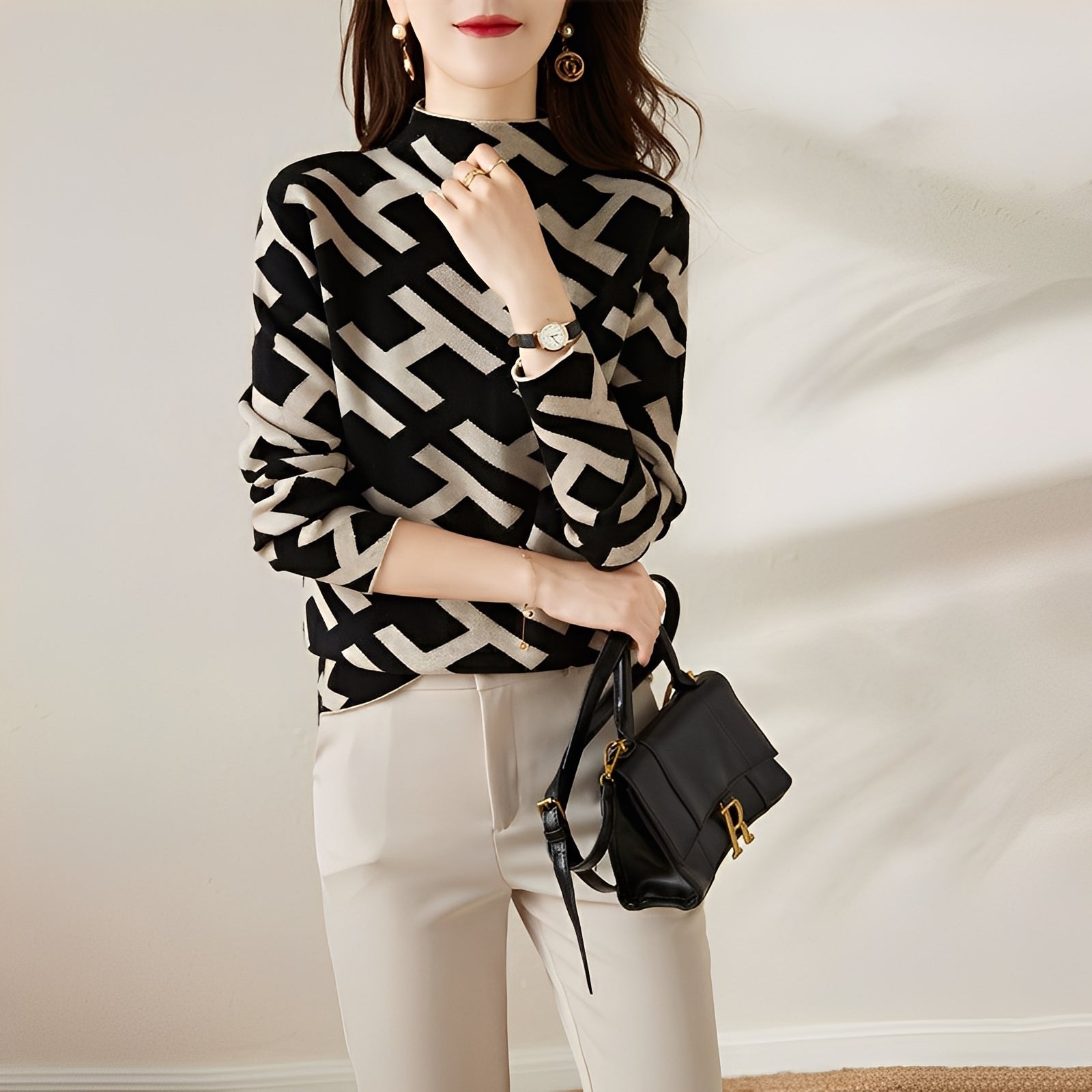 Eleanor - Módní Dlouhý Rukáv Pletený Svetr s Designem pro Ženy