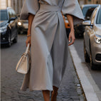 Élise - Stylové šaty s lucernovými rukávy a páskem pro ženy