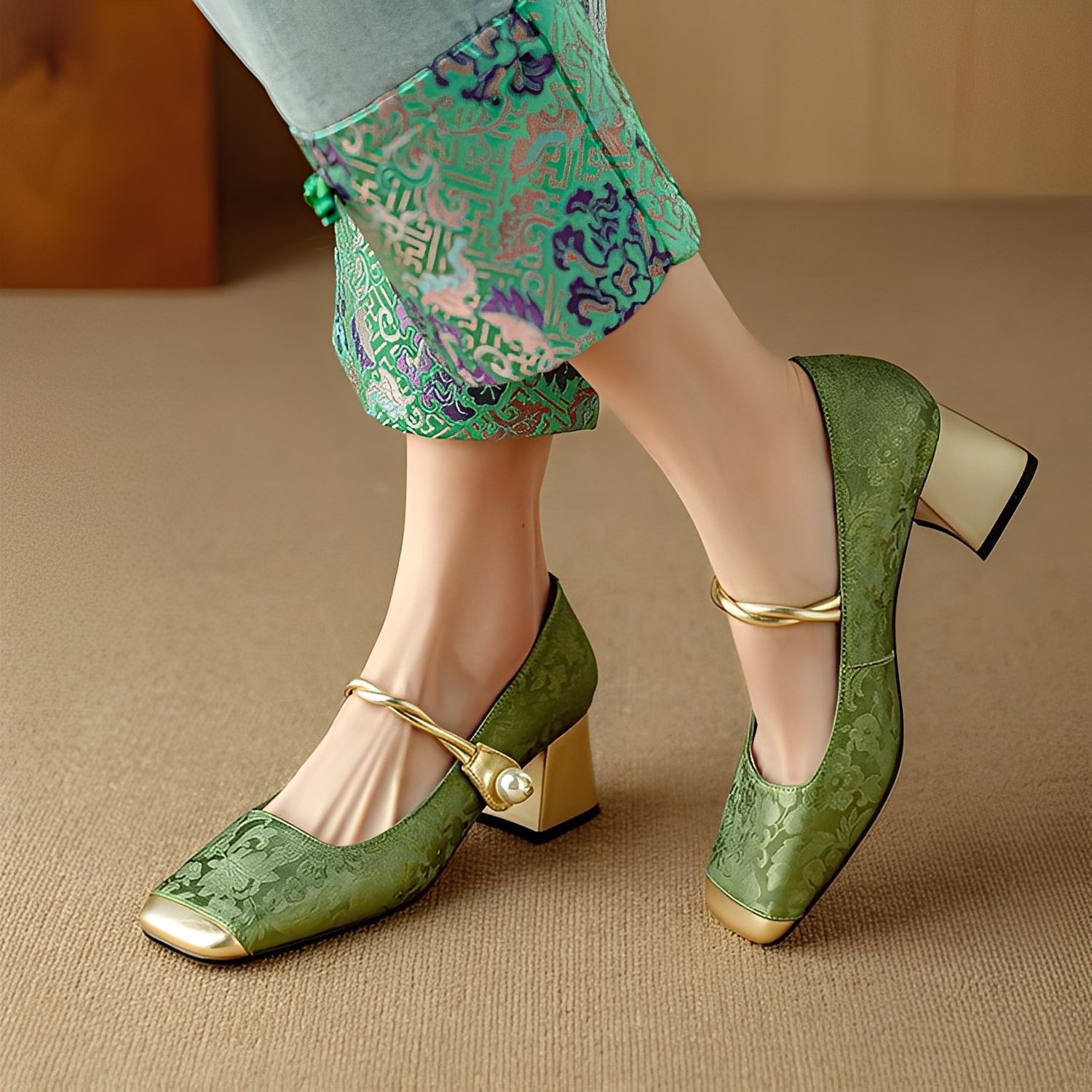 Evelyn - Elegantní, ražené hedvábné sandály na podpatku pro dámy