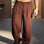 Široké pánské kalhoty Francisque spojují uvolněný komfort s přirozeným stylem. Jsou vyrobeny z měkkého a prodyšného materiálu, který vás udrží v pohodlí i za horka. Široký střih nabízí volnost pohybu a zároveň si zachovává moderní a elegantní vzhled. Tyto univerzální a lehké kalhoty můžete snadno kombinovat s ležérními tričky, polokošilemi nebo košilemi pro práci, víkend či dovolenou. Pohodlné, elegantní a snadno nositelné, kalhoty Francisque jsou nezbytným kouskem vašeho šatníku.