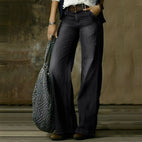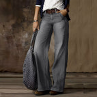 Džíny 'Gisselle' se pyšní retro stylem s širokými nohavicemi a vysokým pasem. Vyrobeny z pevného a pružného denimu, zajišťují lichotivý střih a komfort při nošení. Tradičních pět kapes dokončuje jejich vzhled, což je činí univerzálními pro běžné nošení i volný čas.