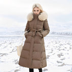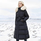 Tento dlouhý péřový kabát nabízí skvělou tepelnou izolaci a moderní styl. Vysoký límec účinně chrání před větrem a zimou, zatímco prošívaná podšívka udržuje příjemné teplo. Stylový design s delším střihem zdůrazňuje siluetu a nabízí více kombinací – ideální na každodenní nošení, do práce nebo na zimní procházky. Nezbytný kousek pro ženy, které chtějí být i v zimě moderní.