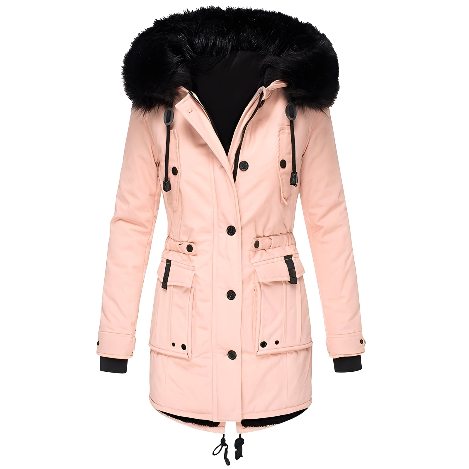- Stylový design: moderní střih s kapucí z umělé kožešiny pro elegantní a sofistikovaný vzhled.