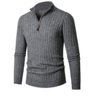 Tento svetr s dlouhými rukávy je vyroben z vysoce kvalitní předené bavlny, která nabízí výjimečnou měkkost a pohodlí. Má vysoký límec, poloviční zip vpředu a žebrované manžety, což vytváří rafinovaný a moderní vzhled. Pro elegantní střih se doporučuje zvolit o jednu velikost větší pro lepší pohodlí.
