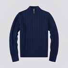 Svetr 'Jasper' se vyznačuje jednoduchým designem s praktickým polovičním zipem. Připravený z příjemného materiálu, poskytuje pohodlí a elegantní vzhled. Jeho střih je moderní a zároveň tradiční. Ideální pro práci, volný čas a klidné večery. Nezbytný kousek pro muže, kteří dbají na styl.