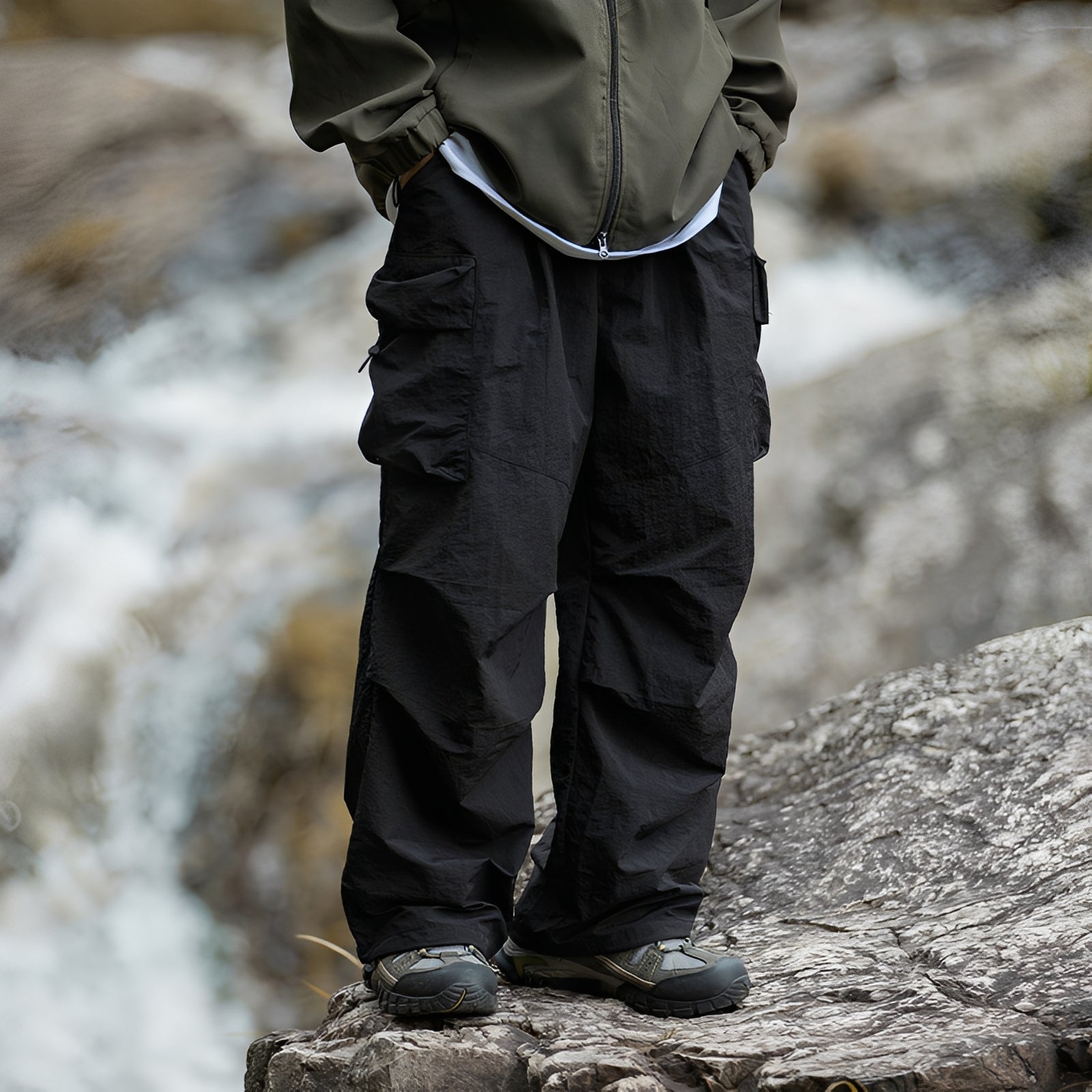 Tyto voděodolné cargokalhoty jsou perfektní pro aktivní dny a různé počasí. Široký a uvolněný střih poskytuje maximální pohodlí a snadnou pohyblivost. Množství kapes nabízí praktické úložiště na cesty. Odolná látka chrání před vlhkostí. Skvělé pro outdoor aktivity, každodenní nošení i městský vzhled.