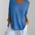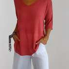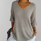 Zlepšete svůj každodenní styl s pleteným topem Jessé s V výstřihem, který je pohodlný, elegantní a snadno se nosí.