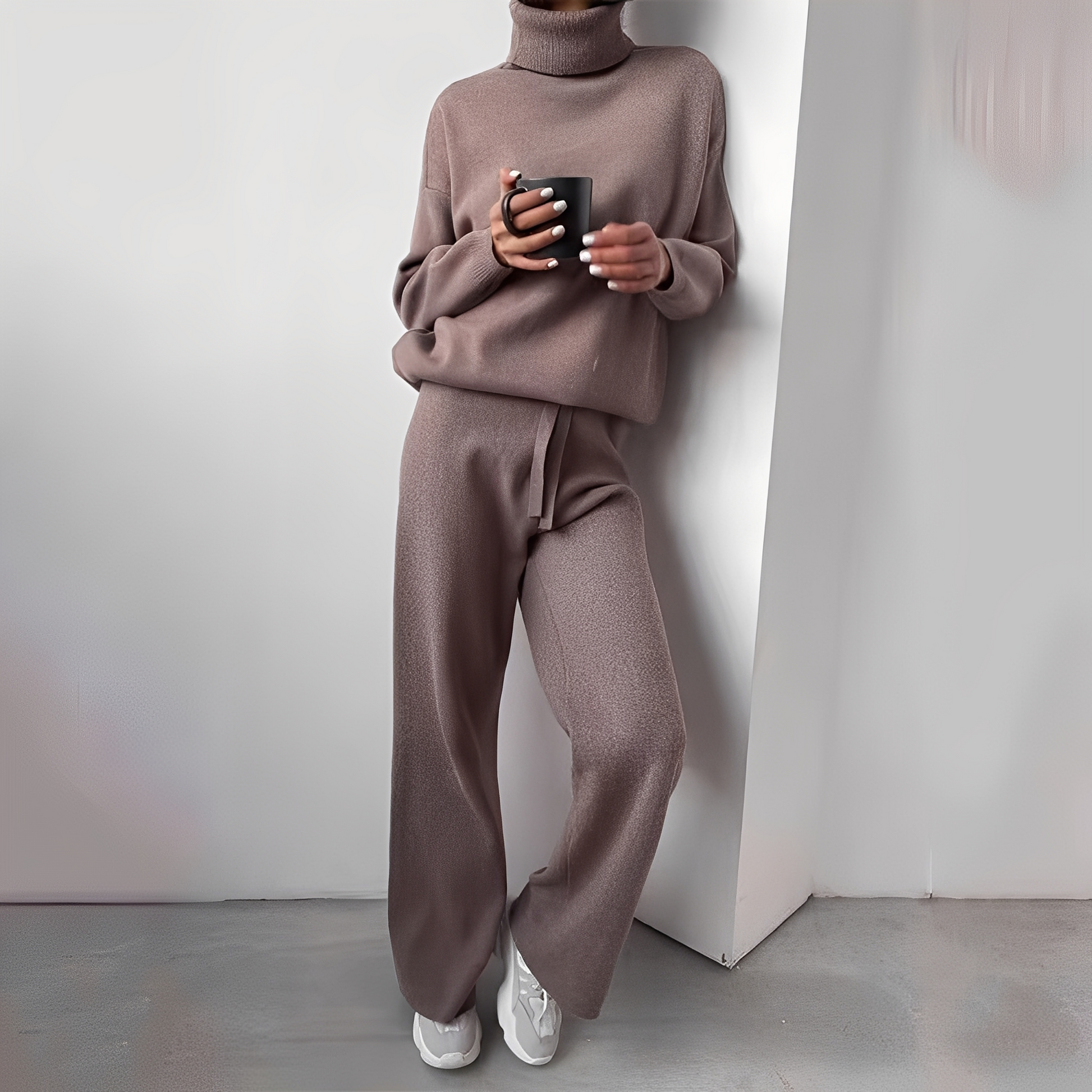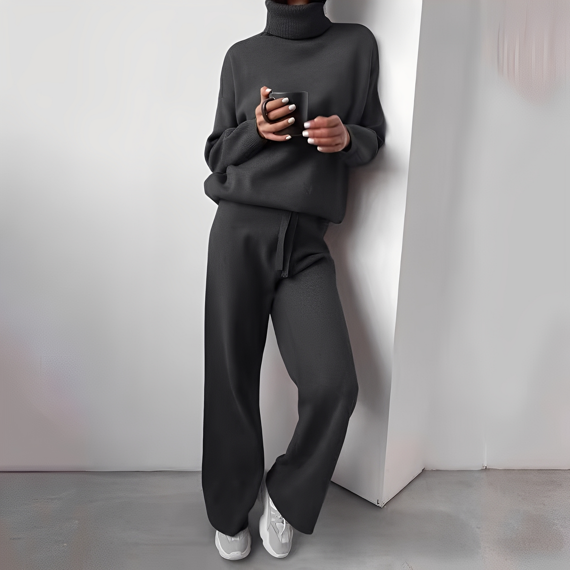 Set „Kimberlee“ přináší jednoduchost a eleganci v moderním a pohodlném stylu. Měkký materiál s jemným vysokým límcem poskytuje pohodlí a stylovou siluetu. Ideální pro odpočinek doma, volnočasové aktivity nebo neformální každodenní nošení – tento set zajišťuje upravený a příjemný vzhled.