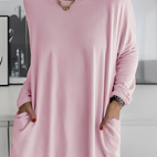 Top s dlouhými rukávy „Krystle“ je známý svou volnou siluetou a měkkým, pohodlným materiálem. Užitečné kapsy spojují praktičnost a styl, což je ideální pro běžné nošení, odpočinek nebo pobyt doma. Jednoduchý a moderní styl z něj dělá univerzální základní kus oděvu.