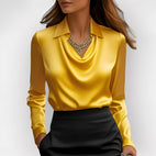 Vyzkoušejte naši saténovou blůzku s dlouhými rukávy Laurentine pro elegantní ženy, vytvořenou pro přidání luxusu a přirozené elegance do vašeho každodenního stylu. Jemná saténová látka krásně splývá a dodává plynulý a elegantní vzhled, který lichotí všem postavám. Její stylový drapovaný výstřih přináší jemnou eleganci, takže je tato blůzka ideální jak do práce, tak na speciální akce. Lehká a pohodlná, zajišťuje celkový komfort při zachování upraveného vzhledu. Noste ji s kalhotami nebo sukní, případně zkombinujte s džínami pro stylový a ležérní styl.