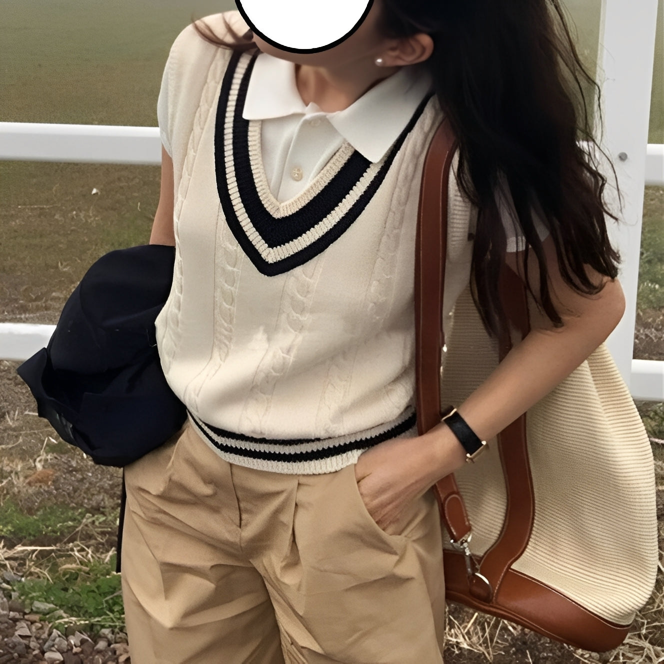 Pletená vesta „Leona“ kombinuje tradiční styl s moderní funkčností. Její jednoduchý V-výstřih vytváří ženský vzhled a je perfektní pro vrstvení s halenkami, košilemi nebo lehkými dlouhými rukávy. Díky jednoduchému designu je ideální jak pro elegantní, tak neformální oděvy. Pohodlná na nošení a snadno kombinovatelná, skvěle se hodí do náročného šatníku. Výborná pro běžný den, do práce nebo pro stylové volnočasové oblečení.