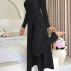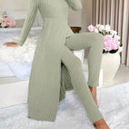 Tato sada z žebrované látky spojuje pohodlí a styl v jednom. Měkký materiál je příjemný na dotek a zaručuje maximální komfort při nošení. Obsahuje vršek a kalhoty, které díky pružnému střihu umožňují snadný pohyb. Ideální pro relaxaci doma, procházky nebo volnočasové aktivity – sestava je všestranná a elegantní. Její jednoduchý design usnadňuje kombinování s dalšími kousky.