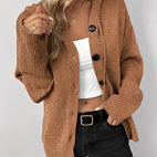 Louise - Pohodlný pletený svetr s kapucí a knoflíky pro ženy