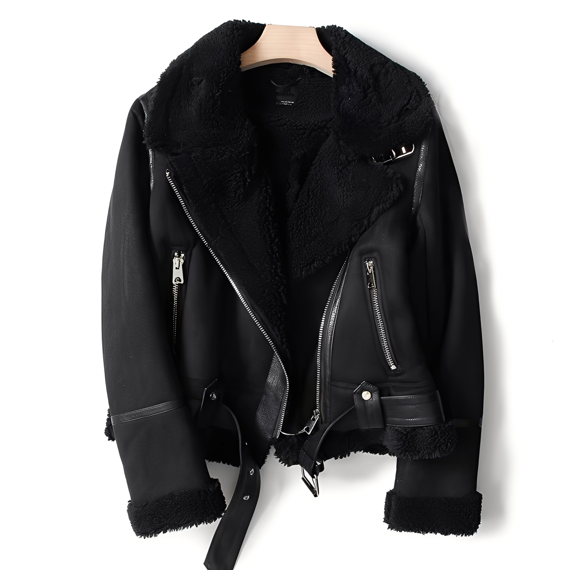 Marianne - Stylová semišová kožená bunda s páskem pro ženy