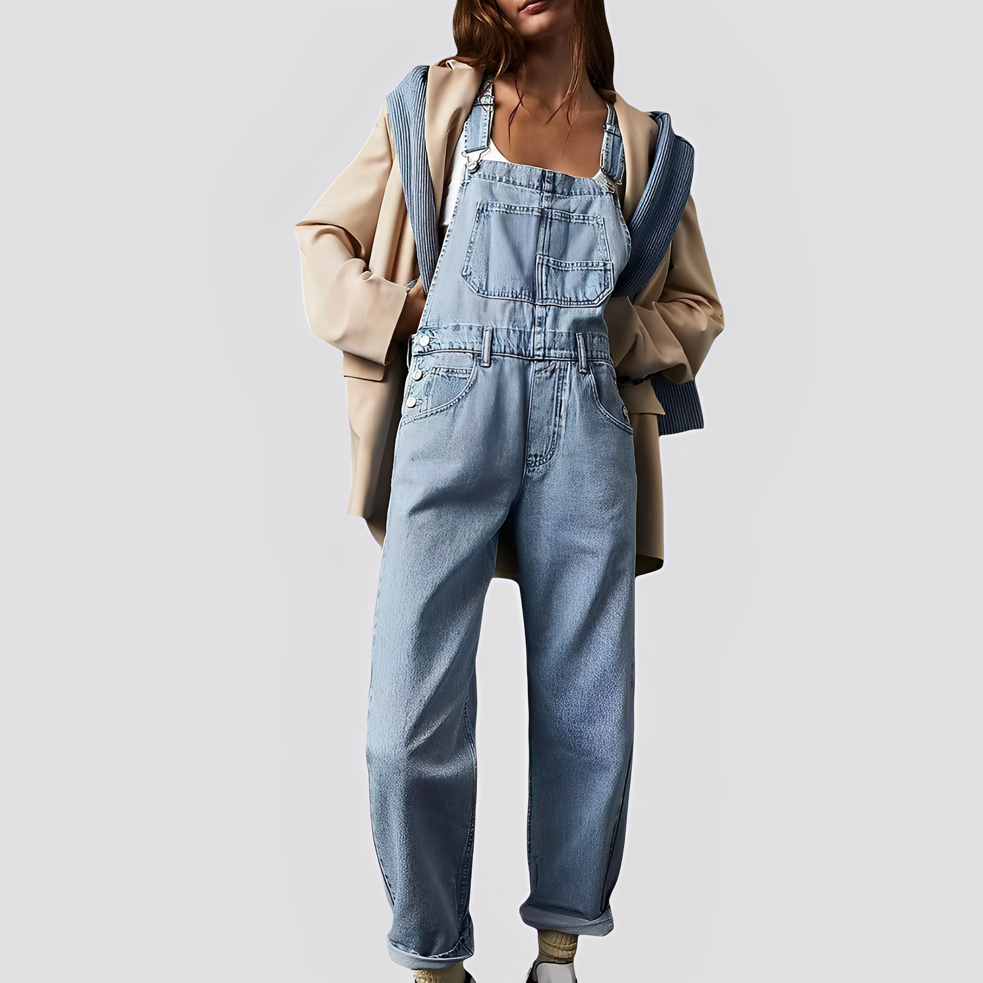 Džínové overaly Mildred se vyznačují volným střihem a kvalitním denimem, který nabízí pohodlí a dlouhou životnost. Díky praktickým kapsám a nastavitelným popruhům poskytují praktičnost a flexibilitu. Jejich módní, ležérní styl je skvělý pro odpočinek, výlety nebo klidné dny.