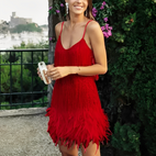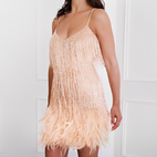 Šaty Monique pro ženy, zdobené třásněmi a pery, kombinují eleganci s hravým designem pro nezapomenutelné momenty. Jsou navrženy pro zdůraznění vaší postavy, dokonale kopírují pohyb a zajišťují pohodlí během celého večera. Jemné peří a třásně v kaskádách dodávají texturu a dynamiku, ideální pro večírky, večerní akce nebo slavnostní události. Vyrobené z kvalitních materiálů, zaručují trvanlivost a pocit luxusu. Nezbytné šaty pro ženy, které chtějí zaujmout výrazným stylem.