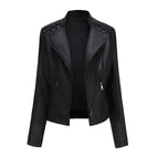The 'Narelle' leather jacket impresses with its top-notch material and slim, short style that suits any shape. It matches easily and looks fantastic with jeans, dresses, or skirts. Detailed craftsmanship guarantees lasting comfort, while the timeless design adds a trendy touch to any look. An essential piece for stylish women.