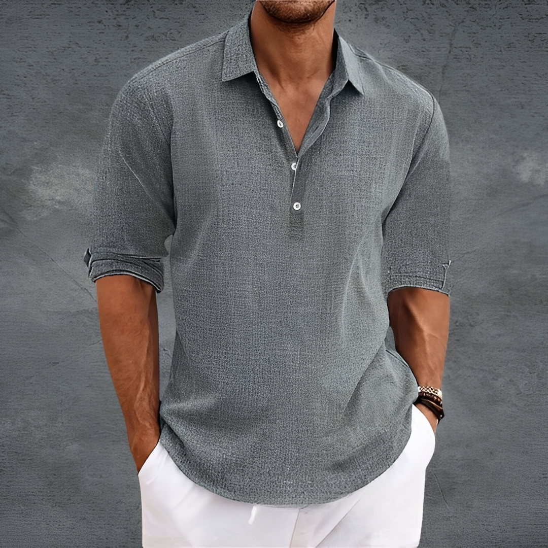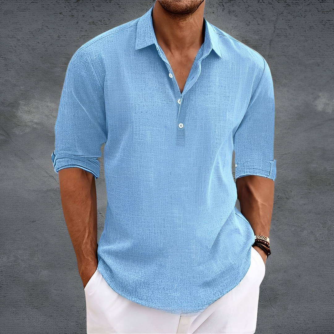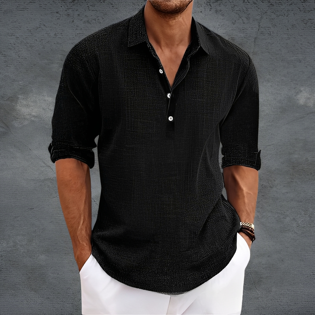 Tato Nathanaël pánská košile s dlouhým rukávem spojuje čistou eleganci s každodenním komfortem. Má klasický límec a hladkou knoflíkovou légu, s přiléhavým, ale pohodlným střihem, který zdůrazní postavu, aniž by omezoval. Její lehký a prodyšný materiál zaručuje pohodlí po celý den, ať už do kanceláře, na pracovní schůzku nebo na volný čas. Dostupná ve snadno kombinovatelných barvách, dobře ladí s kalhotami nebo džínami pro upravený a elegantní vzhled.
