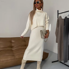 Dvoudílná pletená šatová sada s rolákem a dlouhou formou