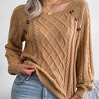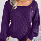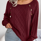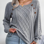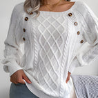 Sally - Dámský módní pletený svetr s ozdobným knoflíkovým vzorem