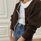 Vivien – Strickjacka s perlovou výzdobou a franzy