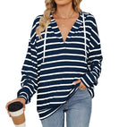 Wenda - Relaxační pruhované tričko s kapucí pro ženy